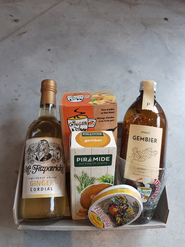 Dit mandje zit boordevol onze lekkerste, pittigste gemberproducten.